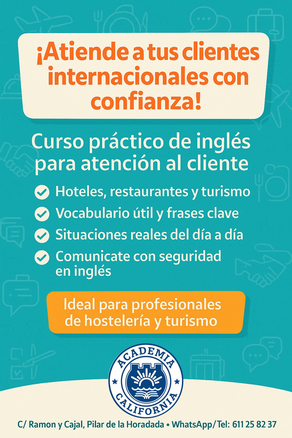 Si trabajas en hoteles, restaurantes, comercios, actividades turísticas o cualquier puesto donde atiendas a clientes internacionales, dominar el inglés es una herramienta clave para dar un servicio de calidad y destacar profesionalmente.