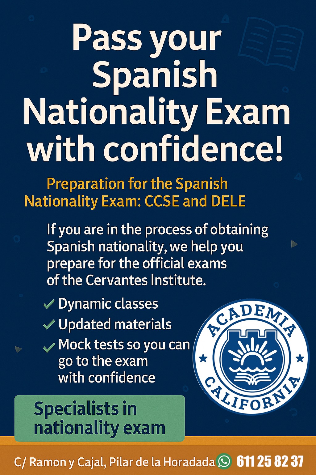 Si estás en proceso de obtener la nacionalidad española, te ayudamos a prepararte para los exámenes oficiales del Instituto Cervantes. Clases dinámicas, materiales actualizados y simulacros para que vayas al examen con seguridad