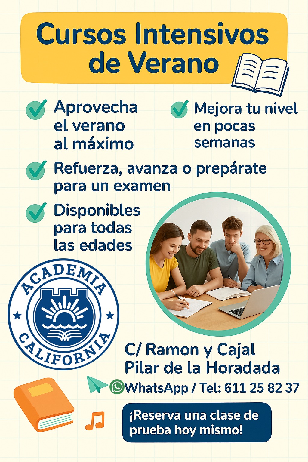 En Academia California, tenemos una amplia variedad de cursos diseñados para adaptarse a tus necesidades, objetivos y ritmo de vida. Aquí encontrarás opciones para todas las edades, niveles y metas. ¡Echa un vistazo y encuentra el curso perfecto para ti!